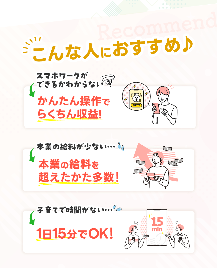 むずかしいスキルは不要で カンタンな作業をしながら 今日から収益を受け取っていただけます。