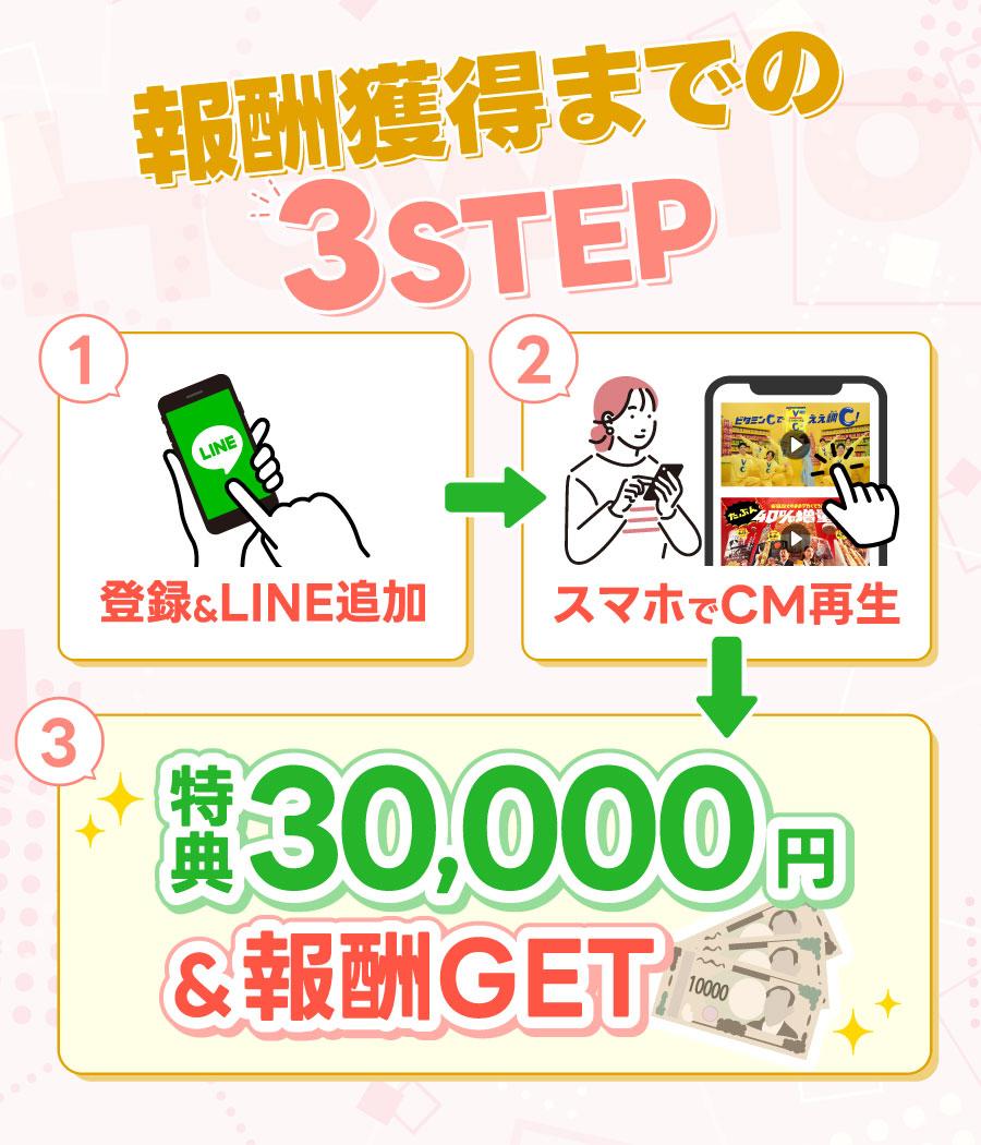 ①登録 ②公式のLINE追加